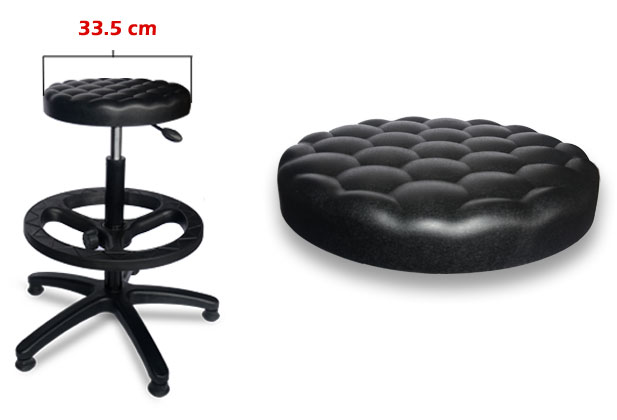 Butaco Industrial con Asiento en Poliuretano - Piel Integral de Alta Resistencia, super-acolchado impermeable y de facil limpieza. con aro plastico graduable en altura y base plastica.