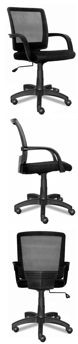 Te presentamos la silla ergonomica para oficina Irlanda, con espaldar cuadrado tapizado en malla traslucida, brazos fijos con base plastica o metalica cromada..