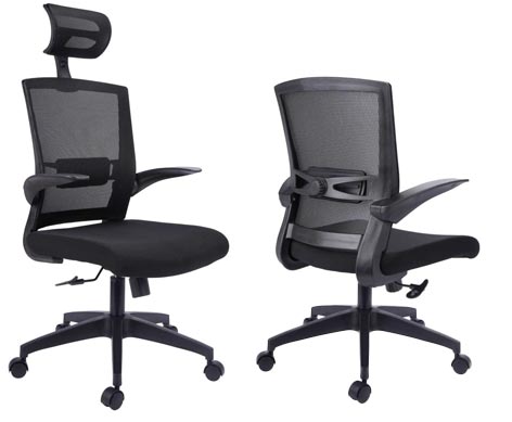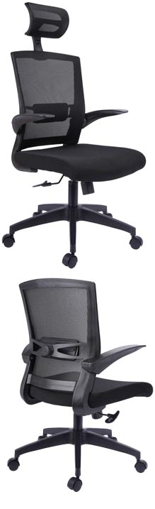 Silla Ejecutiva Ergonomica con espaldar en malla traslucida, apoyo lumbar graduable en profundidad, cabecero graduable en altura y angulo, brazos graduables en altura.